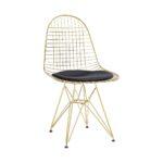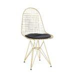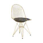 Alta je kovinski stol, ki mu izprepletene žice dajejo industrijski videz, na sedišču pa ima blazino iz eko usnja.