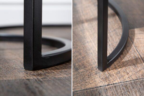 Okrogla miza Aminta je izdelana iz masivnega mangovega lesa s kovinskim podnožjem, naravne barve in rustikalnega videza zaradi ročne izdelave.