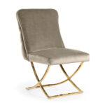 Eleganten in dizajnersko oblazinjen stol z udobnim, debelim sedežem in naslonjalom, ki ga podpira stabilna kovinska konstrukcija. Z izbiro barve materiala ga boste lažje prilagodili preostalemu prostoru.