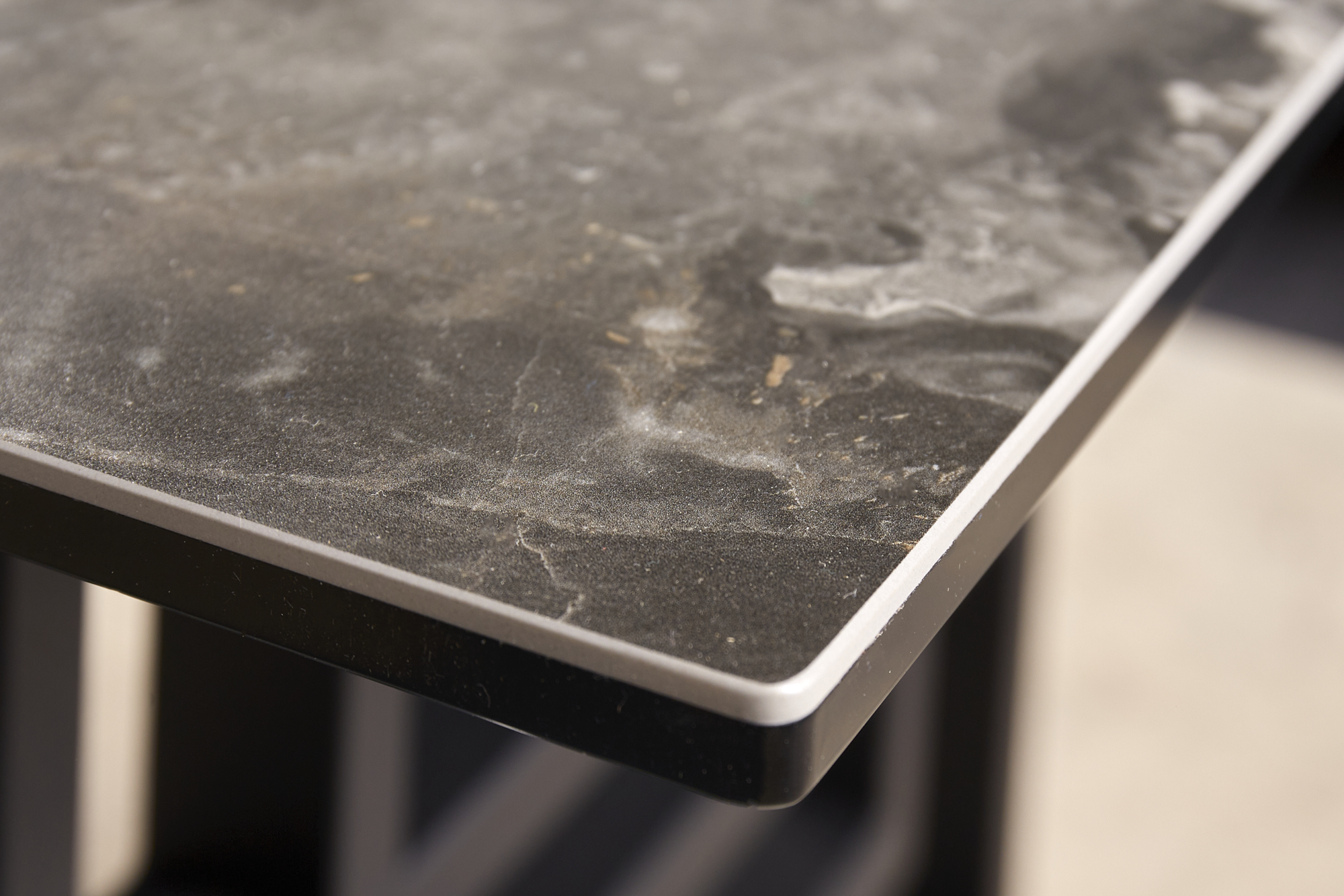 Klubska mizica je sestavljena iz plošče iz kaljenega stekla s keramično plastjo in črnega kovinskega podnožja z nenavadnim in zanimivim dizajnom. Mizna plošča ima učinek marmorja. Je idealen kos pohištva za sodobne prostore.