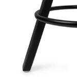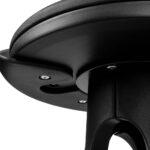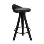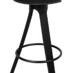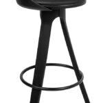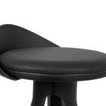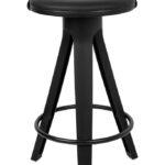 Moderen, črn barski stol z mehkim sedežem je najbolj iskan kos pohištva za notranjost v stilu mansarde. Kovinska osnova 3 debelih nog, ki se združijo v osrednjem delu sedeža, zagotavlja udobje in stabilnost pohištva. Okroglo sedišče je zaključeno z mehko blazino, polnjeno s peno za oblazinjenje. Tkanina, uporabljena za prevleko vzglavnika, je ekološko usnje s pol mat finišem v temno črni barvi. Blazine ni mogoče odstraniti, vendar jo je zaradi zaključka enostavno očistiti. Zanimiv element stola je nizko plastično naslonjalo.
