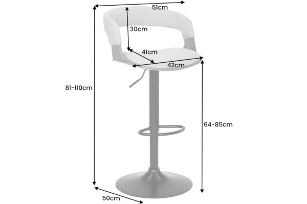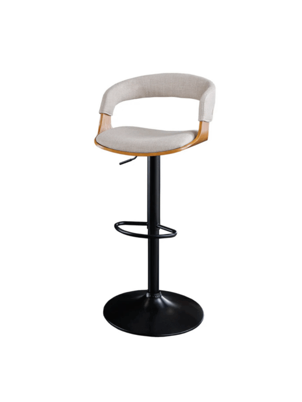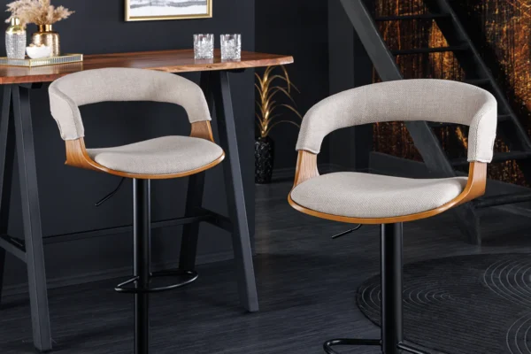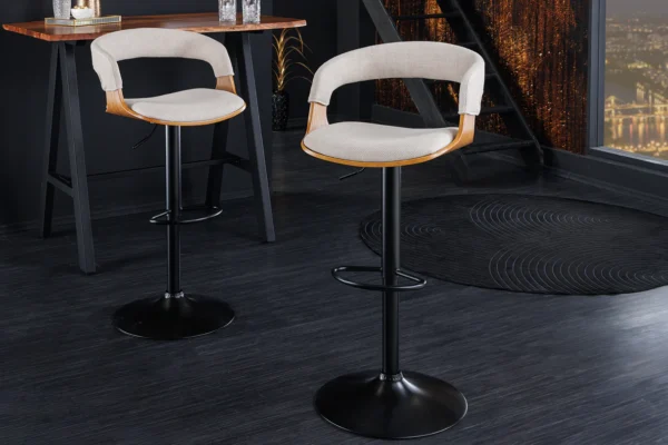 Barski stol Amaya združuje moderno eleganco s praktično funkcionalnostjo, zaradi česar je idealna izbira za vsak sodoben prostor. Izdelan je iz vrhunske kombinacije trpežne kovine, naravnega jesenovega lesa in blaga ter navdušuje s svojo vzdržljivostjo in udobjem. Zasnova podnožja omogoča nastavitev višine med 64 in 85 cm, kar se popolnoma prilagodi različnim višinam bara ali delovne površine.