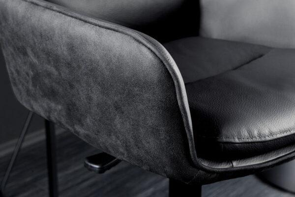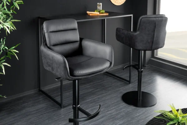 Barski stol Duro je prefinjen dodatek k vsakemu prostoru. Trdno črno kovinsko podnožje z nastavljivo višino zagotavlja oporo, zaradi česar je stol popoln za vsak bar ali otok.
