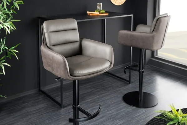 Barski stol Duro je prefinjen dodatek k vsakemu prostoru. Trdno črno kovinsko podnožje z nastavljivo višino zagotavlja oporo, zaradi česar je stol popoln za vsak bar ali otok.