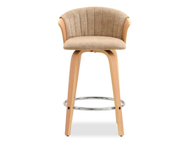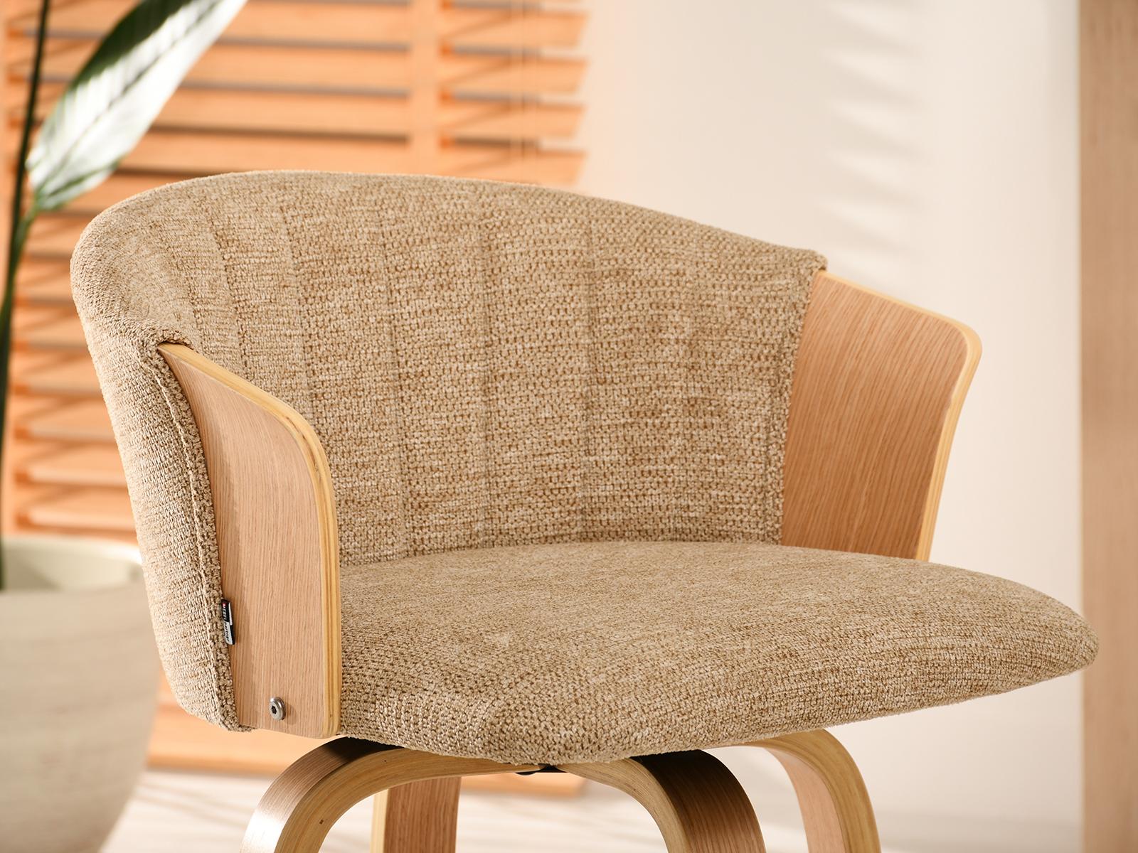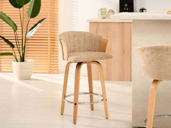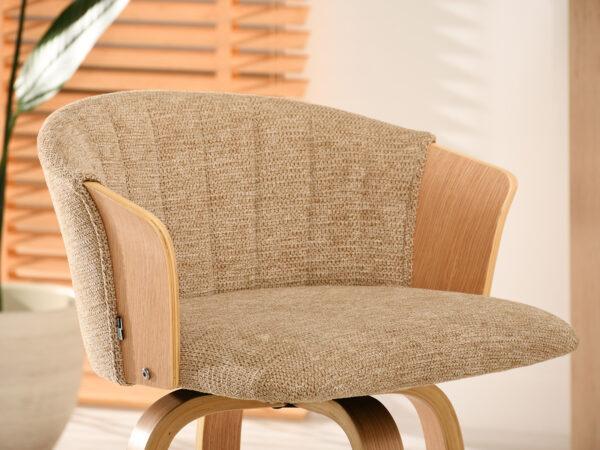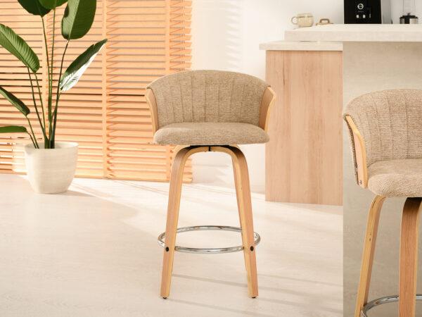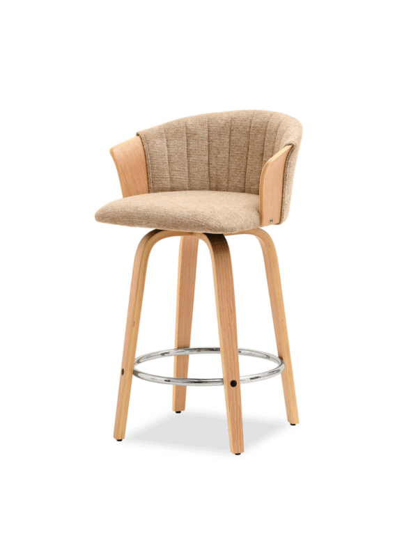 Polbarski stol Kiran je edinstven dodatek k vsaki kuhinji. Zaradi svoje kompaktne velikosti je idealen za manjše prostore, kot so kotički za zajtrk ali majhne čajne kuhinje. Naravna lesena površina doda toplino in eleganco ter ustvari prijetno vzdušje. Ta vrtljivi stol je odlična izbira tudi za odprte dnevne prostore, kjer se kuhinja združuje z dnevno sobo in harmonično združuje različne funkcionalne prostore.
