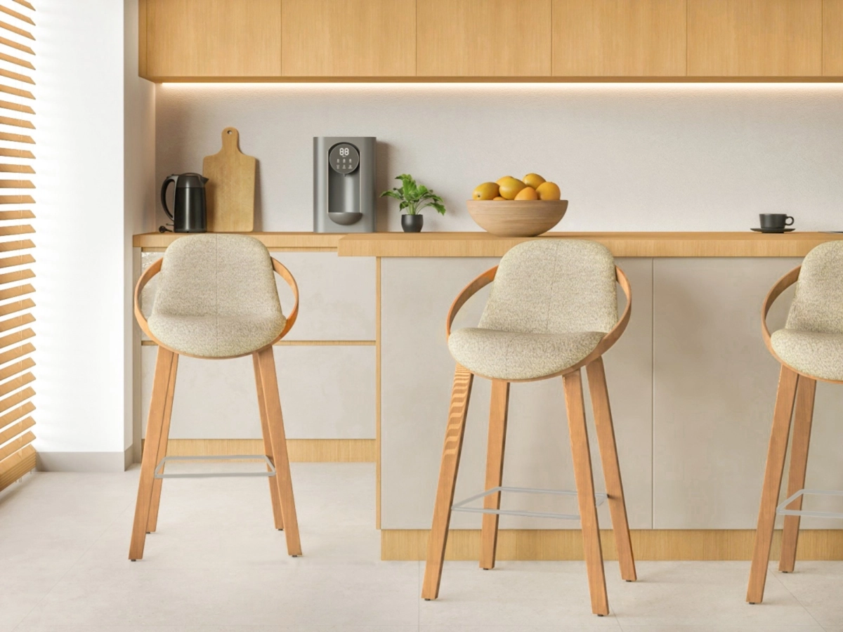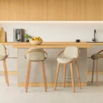 Barski stol Leia je elegantna in funkcionalna rešitev, idealna za domače kuhinje in poslovne prostore. Popolnoma se poda k kuhinjskemu otoku in ponuja udoben prostor za hitre obroke, jutranjo kavo ali družinske pogovore.