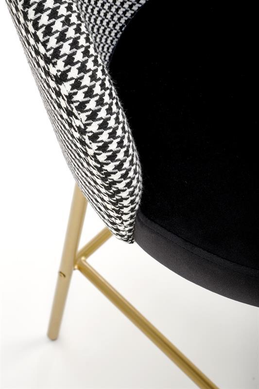 Polbarski stol Sipar z zanimivo, poudarjeno konstrukcijo in mehko oblazinjenim naslonjalom v pepita vzorcu se poda k vsem otokom, lokalom in barskim mizam do višine 1m.