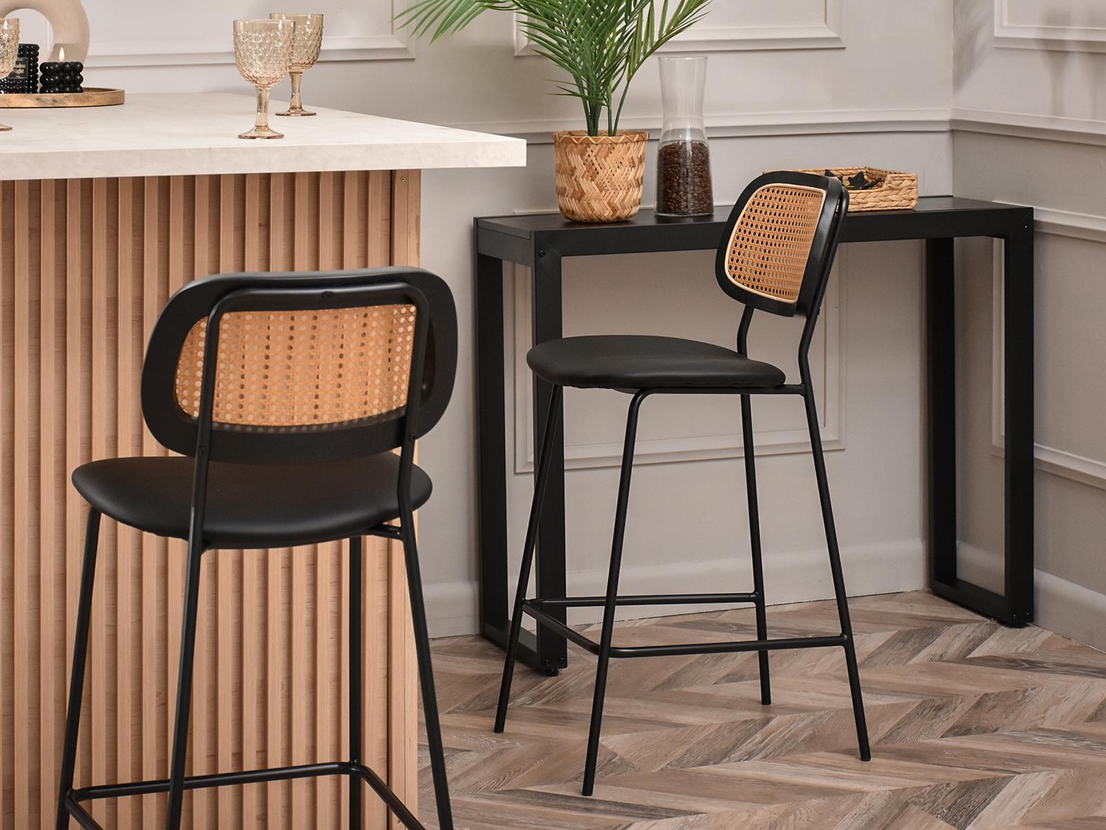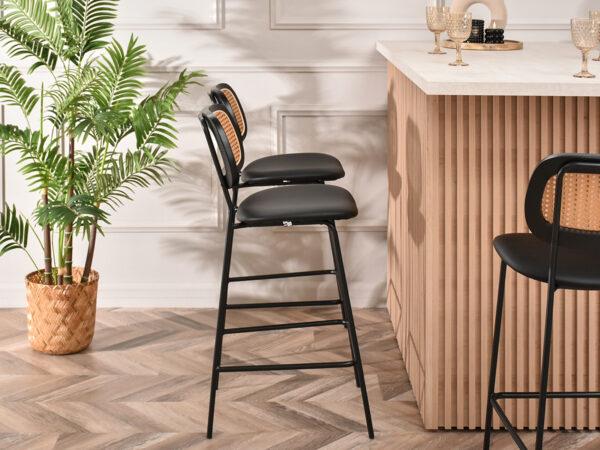 Boja: Črna, Naravna; Materijal: Eko usnje, Kovina, Sintetični ratan;