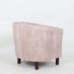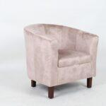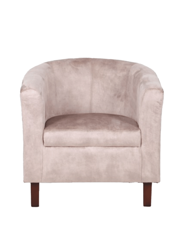 Fotelj Bert je dimenzijsko prilagojen za udobno sedenje. Prevlečena je s tkanino iz mikrovlaken barve šampanj roza, noge pa so izdelane v rjavi barvi.