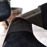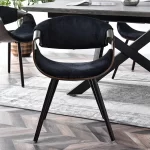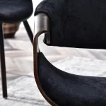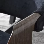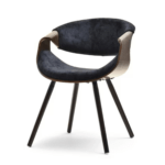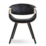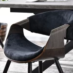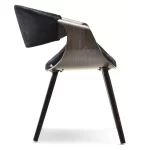 Stol sodobnega dizajna, ki mu daje zanimiv karakter, je izdelan iz kakovostnega ukrivljenega lesa in obložen s prijetno tkanino. Noge so lesene.