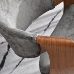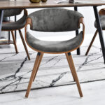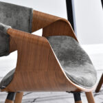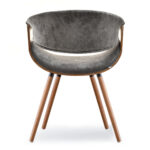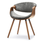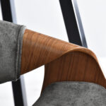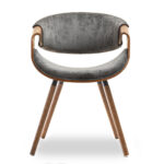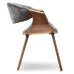 Stol sodobnega dizajna, ki mu daje zanimiv karakter, je izdelan iz kakovostnega ukrivljenega lesa in obložen s prijetno tkanino. Noge so lesene.