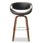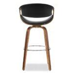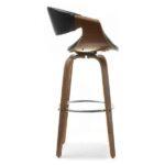 Lesen barski stol Betty II s sedežem iz črnega eko usnja bo odlična izbira za vse ljubitelje industrijskega stila. Barski stol Betty II bo s svojim videzom zagotovo poudarek v prostoru, s svojimi zaobljenimi linijami in kombinacijo lesa in eko usnja pa bo poskrbel za toplino v vsakem interierju.