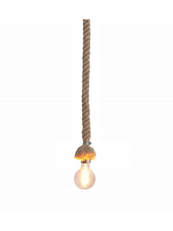 Obesek je izdelan iz naravnega materiala abaka, ročno izdelan s posebno skrbjo, zaradi česar je vsaka lučka unikatna. Njegova naravna barva dodatno poudarja njegovo preprosto, a elegantno obliko. S pomočjo vozlov in zank se lahko višina obeska prilagaja glede na potrebe, kar zagotavlja fleksibilnost pri postavitvi luči.