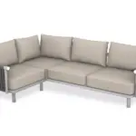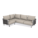 Kotna garnitura Breeze je izdelana iz nerjaveče kovinske osnove in naravno pletenih vrvi, ki zagotavljajo udobje in pridih luksuza. Sestavljen je iz dveh sedežev in fotelja ter kotnega dela. Primeren je za zunanje in notranje prostore. Blazine, ki zagotavljajo udobje in mehkobo temu kosu pohištva, so oblečene v tkanino Batyline Eden 2, ki je na voljo v treh različnih barvah.