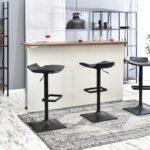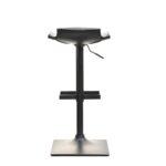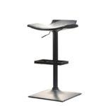 Sodoben barski stol oblečen v črno eko usnje na kovinskem podnožju ravnih linij, ki ima možnost rotacije in nastavitve višine. Idealno se bo prilegel v sodobnih prostorih, črna barva pa bo v prostor vnesla dih elegance.