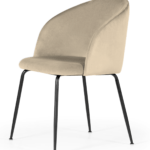 Školjkasto sedišče stola Bruna zagotavlja udobno sedenje in je prevlečeno z žametno tkanino, ki je prijetna na dotik. Noge so izdelane iz črne in hrastove kovine. Vse to ustvari lep, trden, vzdržljiv in udoben stol.