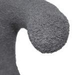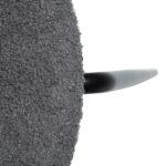 Stol ima močan, a privlačen videz z naslonom, ki spominja na rogovje. Tanke starinske medeninaste noge so izdelane iz kovine, medtem ko je stol oblazinjen v sivo reciklirano blago iz bukleja.