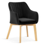 Oblazinjen stol na kovinskem okvirju. Zanimivi vertikalni šivi na notranji strani naslonjala. Oblika vedra in ergonomska višina naslona za roke. Stol ima odstranljivo sedežno blazino. Z izbiro barve materiala ga boste lažje prilagodili preostalemu prostoru.