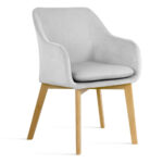 Oblazinjen stol na kovinskem okvirju. Oblika vedra in ergonomska višina naslona za roke. Stol ima odstranljivo sedežno blazino. Z izbiro barve materiala ga boste lažje prilagodili preostalemu prostoru.