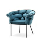 Eleganten naslanjač z dizajnersko obliko, ki bo odlično zapolnil sodoben prostor. Izvirno naslonjalo v obliki blazine, prepleteno med črnim okvirjem, je bistvo dobrega stila. Ustrezna mehkoba sedeža bo tudi dolgotrajno sedenje naredila čisti užitek, uporaba najkvalitetnejših materialov s pozornostjo do vsake podrobnosti pa bo poskrbela za njegovo uporabo še vrsto let.