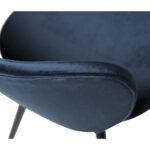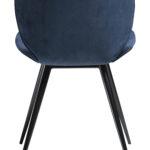 Ta sodoben stol ima preprosto, a osupljivo obliko z zaobljenimi robovi sedeža in elegantnimi, stožčastimi nogami, ki prispevajo k preprostosti dizajna. Stol ima črne noge, medtem ko je naslonjalo prevlečeno s temno modro tkanino.