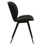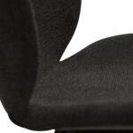 Ta sodoben stol ima preprosto, a osupljivo obliko z zaobljenimi robovi sedeža in elegantnimi, stožčastimi nogami, ki prispevajo k preprostosti dizajna. Stol ima črne noge, medtem ko je naslonjalo prevlečeno s črnim blagom.