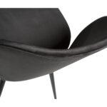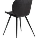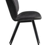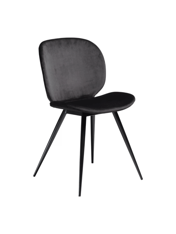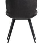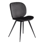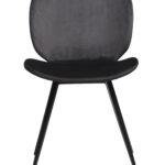 Ta sodoben stol ima preprosto, a osupljivo obliko z zaobljenimi robovi sedeža in elegantnimi, stožčastimi nogami, ki prispevajo k preprostosti dizajna. Stol je opremljen s črnimi nogami, medtem ko je naslonjalo prekrito s črno-sivim žametom.