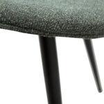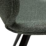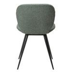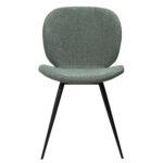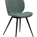 Ta sodoben stol ima preprosto, a osupljivo obliko z zaobljenimi robovi sedeža in elegantnimi, stožčastimi nogami, ki prispevajo k preprostosti dizajna. Stol je opremljen s črnimi nogami, medtem ko je naslonjalo prekrito s prodnato zelenim buklejem.