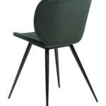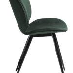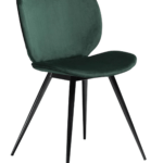 Ta sodoben stol ima preprosto, a osupljivo obliko z zaobljenimi robovi sedeža in elegantnimi, stožčastimi nogami, ki prispevajo k preprostosti dizajna. Stol ima črne noge, medtem ko je naslonjalo prekrito s smaragdno zeleno tkanino.