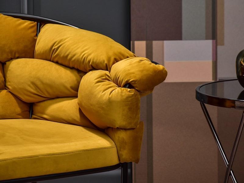 Eleganten naslanjač z dizajnersko obliko, ki bo odlično zapolnil sodoben prostor. Izvirno naslonjalo v obliki blazine, prepleteno med črnim okvirjem, je bistvo dobrega stila. Ustrezna mehkoba sedeža bo tudi dolgotrajno sedenje naredila čisti užitek, uporaba najkvalitetnejših materialov s pozornostjo do vsake podrobnosti pa bo poskrbela za njegovo uporabo še vrsto let.
