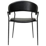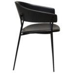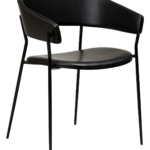 Stol je kombinacija klasičnega stila z modernim izrazom. Čudovit dizajn vključuje vintage črno umetno usnje, elegantne zaobljene naslone za roke in vitke noge, ki ustvarjajo lahkoten in eleganten vtis.