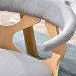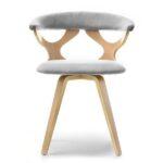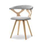 Stol sodobnega dizajna, ki mu daje zanimiv karakter, je napravljen iz kakovostnega lesa in obložen s prijetno tkanino. Noge so lesene.