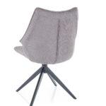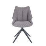 Vrtljiv jedilni stol Tell s funkcijo vračanja v prvotni položaj, oblazinjen v material Vardo, s sediščem, naslonjalom in rokonasloni zanimivega dizajna ter kovinskimi nogami, je na voljo v treh odtenkih.