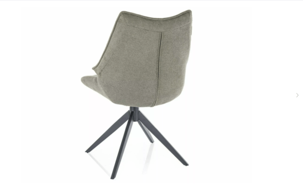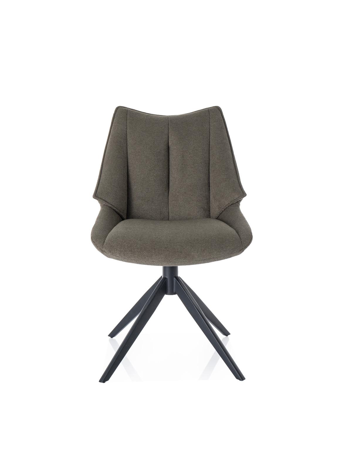 Vrtljiv jedilni stol Tell s funkcijo vračanja v prvotni položaj, oblazinjen v material Vardo, s sediščem, naslonjalom in rokonasloni zanimivega dizajna ter kovinskimi nogami, je na voljo v treh odtenkih.