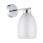 Stenska svetilka z dvojnim senčnikom – zunaj prozornim in znotraj neprozornim steklom bo popestrila vsak prostor. Še posebej učinkovito je, če osvetli ogledalo!