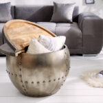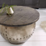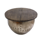 Plošča te zanimive mize je narejena iz mangovega lesa, kovinsko podnožje pa je varjeno z zakovicami. Ta klubska mizica se lahko uporablja tudi kot posoda za blazine, odeje in podobno.