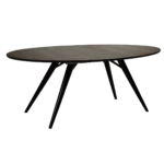 Miza je elegantne ovalne oblike s stožčastimi nogami. Primeren je za jedilnice in pisarne in ima 2 podaljška, ki povečata dolžino mize z 2 na 3 metre, kar omogoča namestitev za 12-14 oseb. Podaljške je enostavno namestiti, saj mizna plošča leži na kovinskih vodilih, ki omogočajo gladko drsenje. Zavarovani so s skritimi mehanizmi znotraj mizne plošče in majhnimi ključavnicami pod mizo ter so shranjeni ločeno od mize. Lesena plošča je sive barve z vidnimi zrnci.