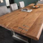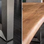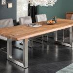 Ročno izdelana miza iz masivnega akacijevega lesa z izrazitimi detajli iz nerjavnega jekla, ki se bo odlično prilegala vaši jedilnici.