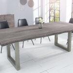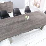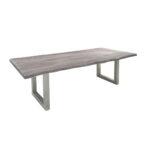 Ročno izdelana miza iz masivnega sivega akacijevega lesa z izrazitimi detajli iz nerjavnega jekla, ki se bo odlično prilegala vaši jedilnici.
