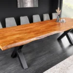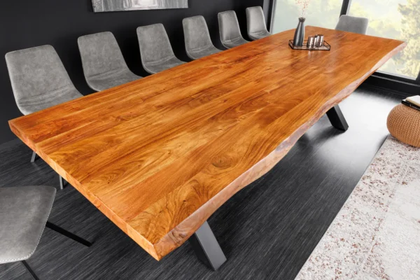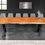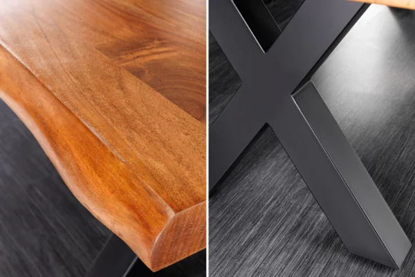 Miza iz masivnega akacijevega lesa s kovinskim ogrodjem, ki bo vašemu prostoru dala industrijski videz.
