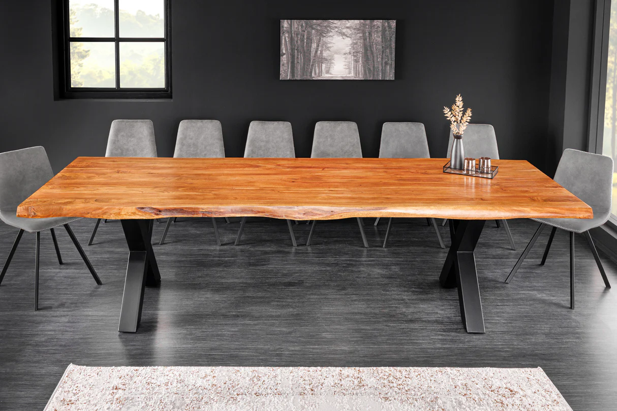 Miza iz masivnega akacijevega lesa s kovinskim ogrodjem, ki bo vašemu prostoru dala industrijski videz.
