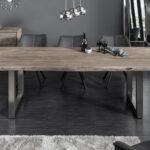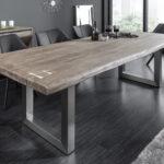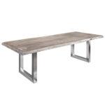 Ročno izdelana miza iz masivnega sivega akacijevega lesa z izrazitimi detajli iz nerjavnega jekla, ki se bo odlično prilegala vaši jedilnici.