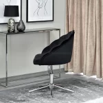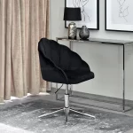 Predstavljamo model Eloise Star z višinsko nastavljivim podnožjem 13 cm, zaradi česar bo fotelj funkcionalen kot pisarniški ali garderobni fotelj. Sedež je polnjen z visoko elastično pohištveno peno, ki zagotavlja optimalno trdoto pri vsakodnevni uporabi. Naslonjalo za hrbet se neopazno poveže z nizkimi nasloni za roke, zaradi česar lahko stol potisnete čim dlje pod mizno ploščo. Poleg tega ima model funkcijo vrtenja, ki vam omogoča popolno svobodo gibanja med uporabo. Model je možno naročiti tudi v varianti z zlato ali črno osnovo.