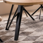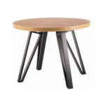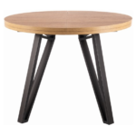 Raztegljiva, okrogla miza premera 100 cm z dodatno ploščo dolžine 68 cm, laminirana v barvi hrasta, bo odlična rešitev za manjše prostore, ki potrebujejo nevtralen kos.