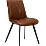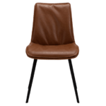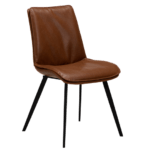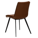 Stol ima sodoben dizajn z gladko obliko sedeža in blazino za dodatno udobje. Sedež je oblečen v vintage svetlo rjavo eko usnje, kovinske noge pa so v črni barvi.
