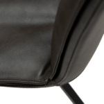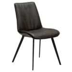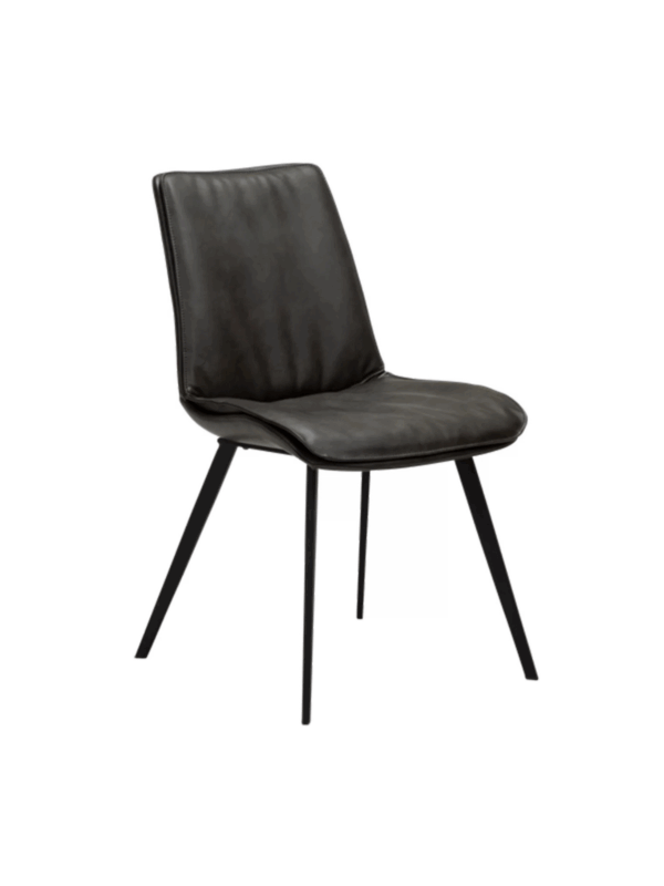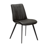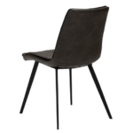 Stol ima sodoben dizajn z gladko obliko sedeža in blazino za dodatno udobje. Sedež je oblečen v vintage sivo eko usnje, kovinske noge pa so v črni barvi.