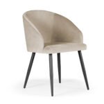 Ta izdelek lahko prilagodite svojim željam. Pregled materialov in barvEleganten in dizajnersko oblazinjen stol s subtilno oblikovanim naslonjalom. Stol moderne oblike in izvirne oblike. Stol je izdelan na lesenem okvirju in kovinskih nogah. Z izbiro barve materiala ga boste lažje prilagodili preostalemu prostoru.