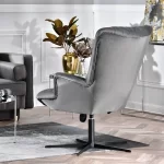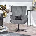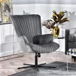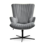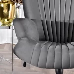 Lounge stol Ray bo vnesel harmonijo tako v moderne interierje kot v klasično eleganco. Zvezdasto podnožje je trdna podlaga za sedež, polnjen z gobico in oblazinjen z žametom, z visokimi naslonjali za roke in naslonjalom, okrašenim z navpičnimi radialnimi šivi. Fotelj se enostavno pritrdi s pomočjo 4 vijakov, ročaj, ki je sestavni del mehanizma, pa vam omogoča nastavitev naklona. Omeniti velja, da ima črni fotelj iz kolekcije funkcijo zibanja. Posledično zagotavlja veliko večje udobje kot tradicionalni modeli brez zgoraj omenjenega udobja. Posebno profilirano hrbtišče se prilagaja oblinam človeškega telesa in razbremeni hrbtne mišice, odpravlja bolečine in zagotavlja občutek sprostitve po napornem dnevu.