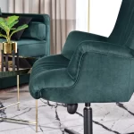 Lounge stol Ray bo vnesel harmonijo tako v moderne interierje kot v klasično eleganco. Zvezdasto podnožje je trdna podlaga za sedež, polnjen z gobico in oblazinjen z žametom, z visokimi naslonjali za roke in naslonjalom, okrašenim z navpičnimi radialnimi šivi. Fotelj se enostavno pritrdi s pomočjo 4 vijakov, ročaj, ki je sestavni del mehanizma, pa vam omogoča nastavitev naklona. Omeniti velja, da ima črni fotelj iz kolekcije funkcijo zibanja. Posledično zagotavlja veliko večje udobje kot tradicionalni modeli brez zgoraj omenjenega udobja. Posebno profilirano hrbtišče se prilagaja oblinam človeškega telesa in razbremeni hrbtne mišice, odpravlja bolečine in zagotavlja občutek sprostitve po napornem dnevu.