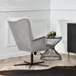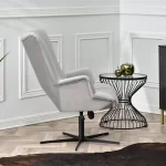 Lounge stol Ray bo vnesel harmonijo tako v moderne interierje kot v klasično eleganco. Zvezdasto podnožje je trdna podlaga za sedež, polnjen z gobico in oblazinjen z žametom, z visokimi naslonjali za roke in naslonjalom, okrašenim z navpičnimi radialnimi šivi. Fotelj se enostavno pritrdi s pomočjo 4 vijakov, ročaj, ki je sestavni del mehanizma, pa vam omogoča nastavitev naklona. Omeniti velja, da ima črni fotelj iz kolekcije funkcijo zibanja. Posledično zagotavlja veliko večje udobje kot tradicionalni modeli brez zgoraj omenjenega udobja. Posebno profilirano hrbtišče se prilagaja oblinam človeškega telesa in razbremeni hrbtne mišice, odpravlja bolečine in zagotavlja občutek sprostitve po napornem dnevu.